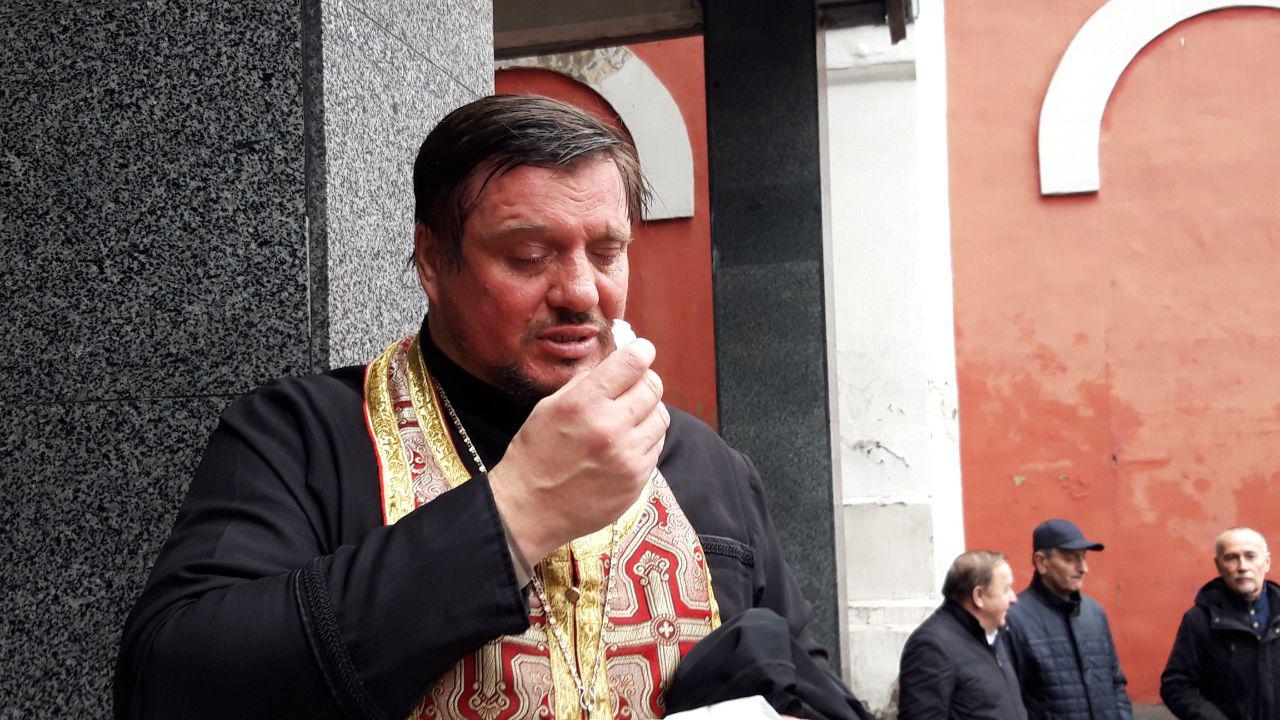 Около 12.15 сторонники УПЦ КП опять выдвинулись под Офис президента. Когда люди начали отходить от суда, подошла полиция и хотела задержать одного священника и участника крестного хода, якобы они были самые активные. Но началась драка, и полиция отступила. Сейчас крестный ход спокойно идёт к ОП.