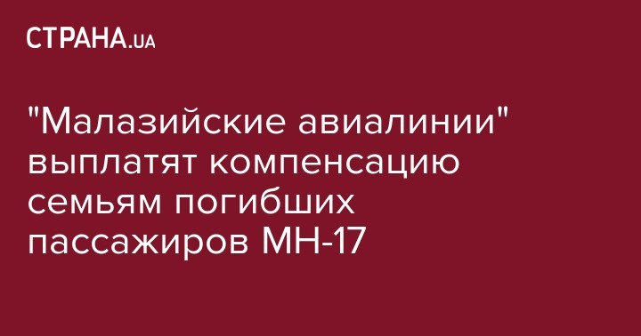 "Малазийские авиалинии" выплатят компенсацию семьям погибших пассажиров МН-17