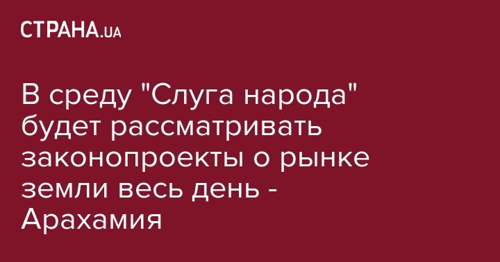 В среду, 13 ноября, фракция "Слуга народа" весь день будет рассматривать законопроекты о рынке земли. Об этом заявил лидер фракции Давид Арахамия после окончания заседания его фракции вечером в понедельник в Киеве, передает Интерфакс-Украина