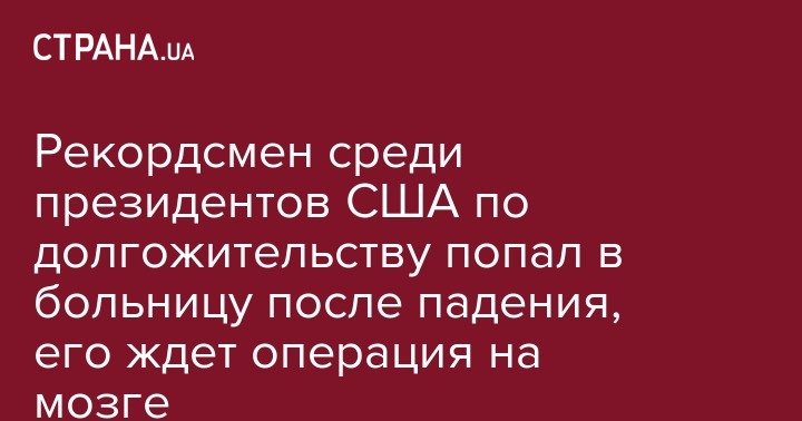 У 95-летнего Картера давление резко подскочило давление из-за падения. Ему сделают операцию по снижению внутричерепного давления.