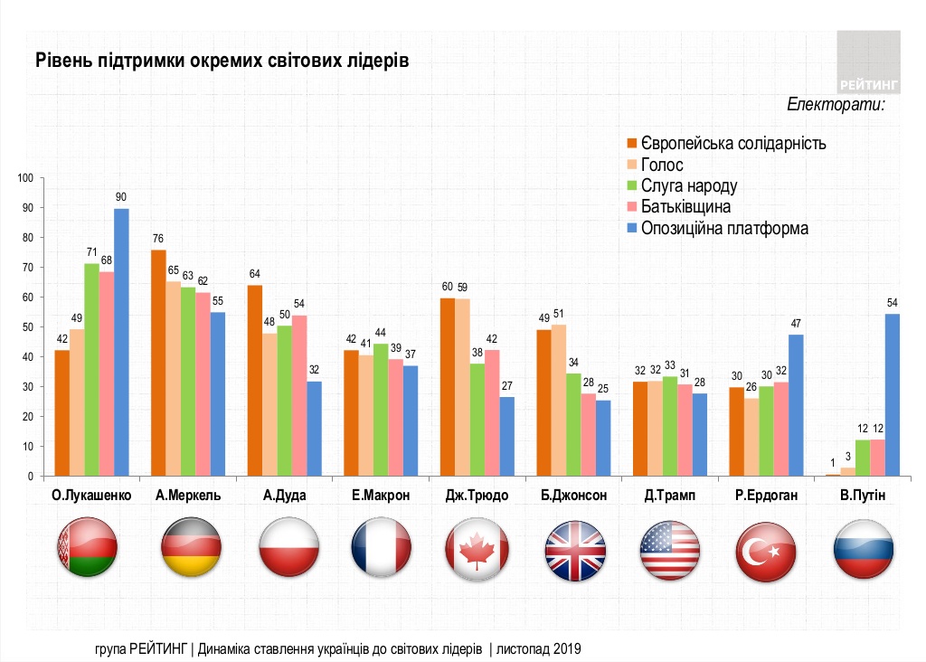 Наиболее интересная часть опроса - это взаимосвязь между тем, как украинцы голосовали на парламентских выборах и отношением к мировым лидерам.