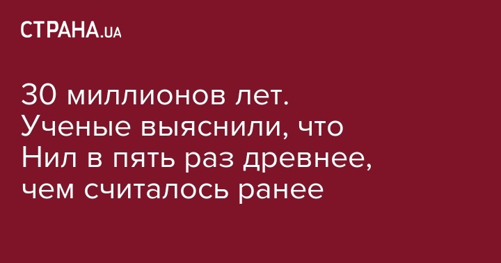 30 миллионов лет. Ученые выяснили, что Нил в пять раз древнее, чем считалось ранее