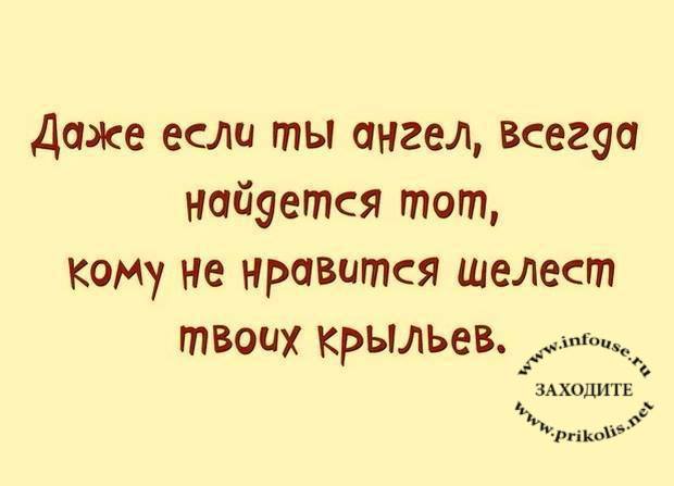 А также сетевыми мудростями. Например, "Даже, если ты ангел – всегда найдется тот, кому не понравится шелест твоих крыльев.