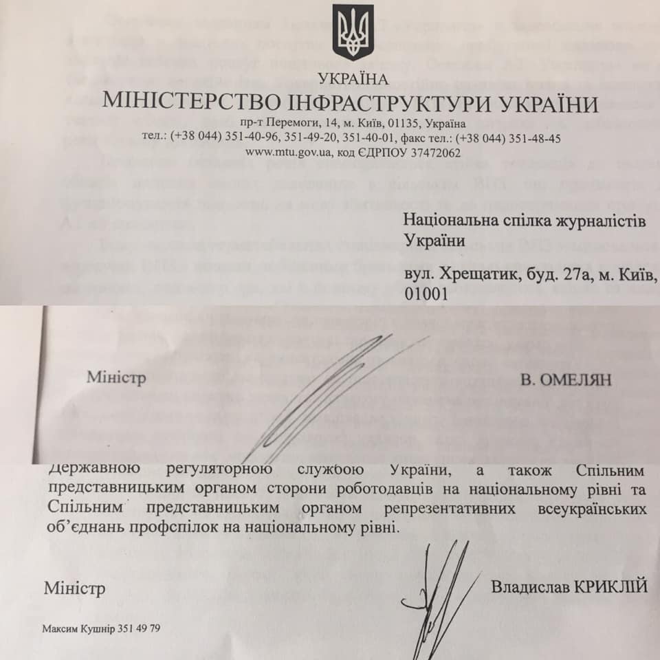 "10 сентября 2019 года Национальный союз журналистов Украины обратился с официальным письмом к новоназначенному министру инфраструктуры Владиславу Криклию по вопросу повышения цен на почтовую доставку газет, которую пытался ввести национальный оператор почтовой связи АО "Укрпочта". В этом письме мы призвали господина министра встать на защиту украинских газет и их аудитории и не вводить в действие приказ "Об утверждении тарифов на прием и доставку отечественных периодических печатных изданий по подписке".
