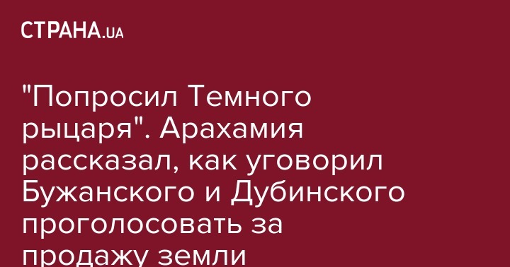 "Попросил Темного рыцаря". Арахамия рассказал, как уговорил Бужанского и Дубинского проголосовать за продажу земли