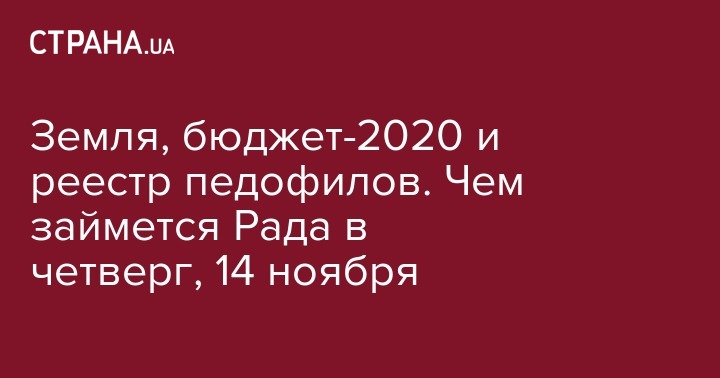 Земля, бюджет-2020 и реестр педофилов. Чем займется Рада в четверг, 14 ноября
