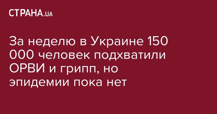 За прошедшую неделю (04-10.11) в Украине диагноз ОРВИ установлен у 150 171 человека. Из общего числа заболевших количество детей составляет 66,5% . Интенсивный показатель заболеваемости составляет 392,7 на 100 000 населения, что на 17,6% меньше эпидемического порога по Украине. Об этом сообщается на сайте Минздрава.
