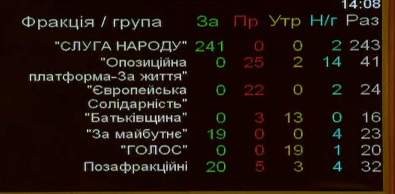 Во фракции "Слуга народа" проект госбюджета поддержал 241 человек, 20 голосов дали внефракционные депутаты, 19 - из группы "За будущее".