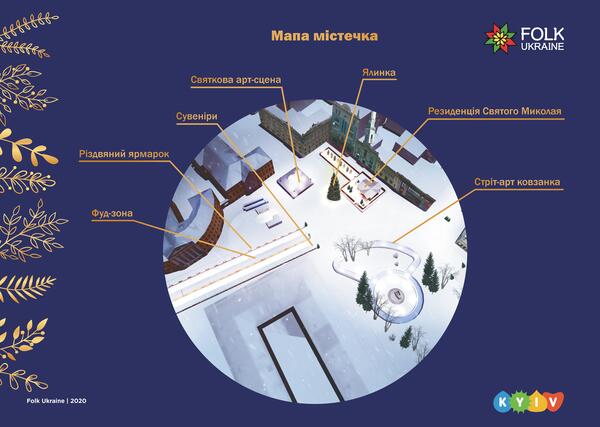 Folk Ukraine обещает многочисленные развлечения и на Контрактовой площади: резиденцию святого Николая, стрит-арт каток, горку и рождественскую ярмарку. Тематика оформления площади - опошнянская керамика. Праздничные события будут проходить на ней с 14 декабря по 20 января.