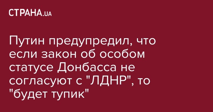 Путин предупредил, что если закон об особом статусе Донбасса не согласуют с "ЛДНР", то "будет тупик"