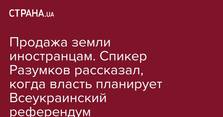 Спикер Верховной Рады Дмитрий Разумков заявил, что Всеукраинский референдум о продаже земли иностранцам может состояться и раньше 2024 года, но только после того, как закон о рынке земли будет принят во втором чтении.