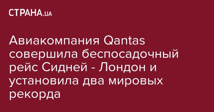 Самолет авиакомпании Qantas (Австралия) совершил беспересадочный экспериментальный рейс из Сиднея (Австралия) в Лондон (Англия). По итогам перелета было побито два мировых рекорда.