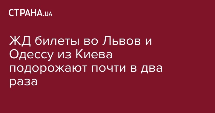 Стоимость билетов на поезда во Львов и Одессу из Киева (№105 "Киев - Одесса"и поезд №91 "Киев - Львов") к концу марта значительно подорожают. Об этом сообщает агентство "Интерфакс-Украина", ссылаясь на информацию пресс-службы "Укрзализныци".