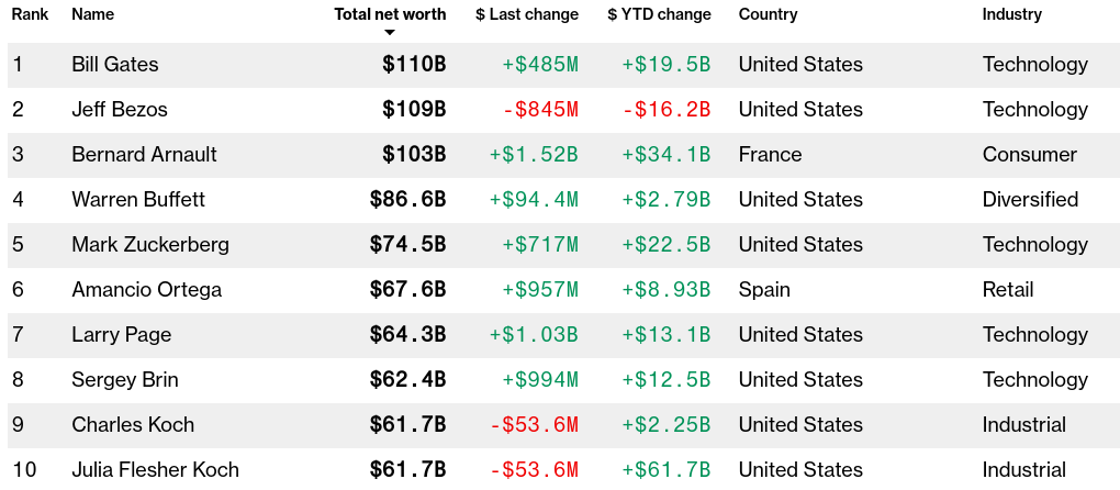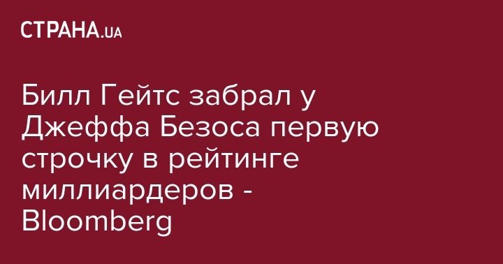 Основатель Microsoft Билл Гейтс впервые за два года обогнал основателя Amazon Джеффа Безоса в списке миллиардеров по версии Bloomberg. Состояние Гейтса оценивается примерно в 110 миллиардов долларов, а Безоса - в 109 миллиардов.