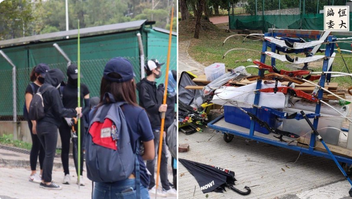 Во время обстрела один из офицеров полиции получил ранение в ногу стрелой. Это не первый раз, когда участники гонконгского майдана используют луки. Утром в четверг они уже стреляли по полиции из луков, а также бросали горшки с цветами.
