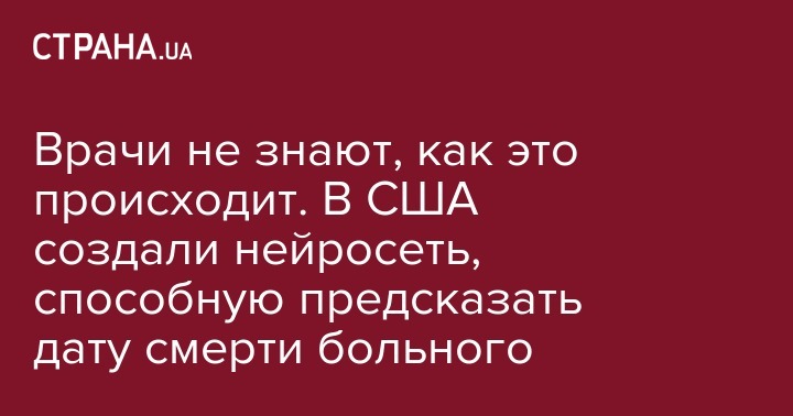 Врачи не знают, как это происходит. В США создали нейросеть, способную предсказать дату смерти больного
