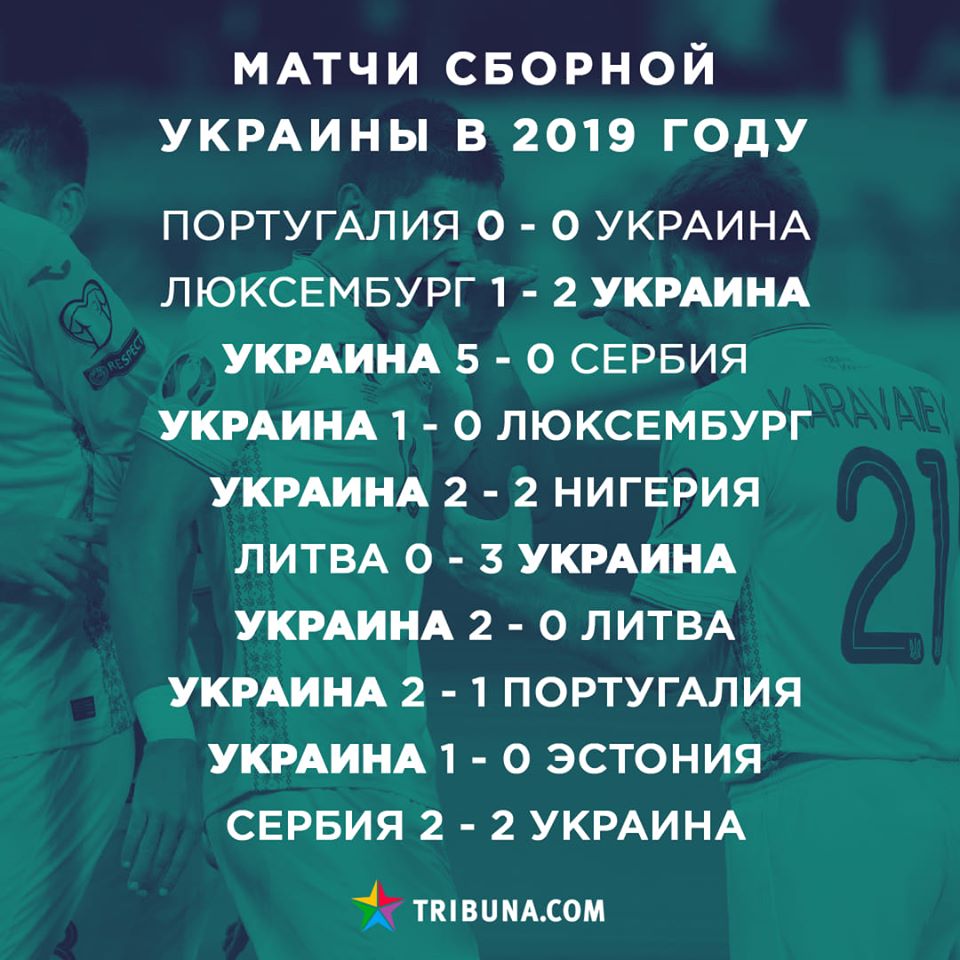 Украинская сборная по футболу впервые за годы независимости закончила год без поражений. Инфографика