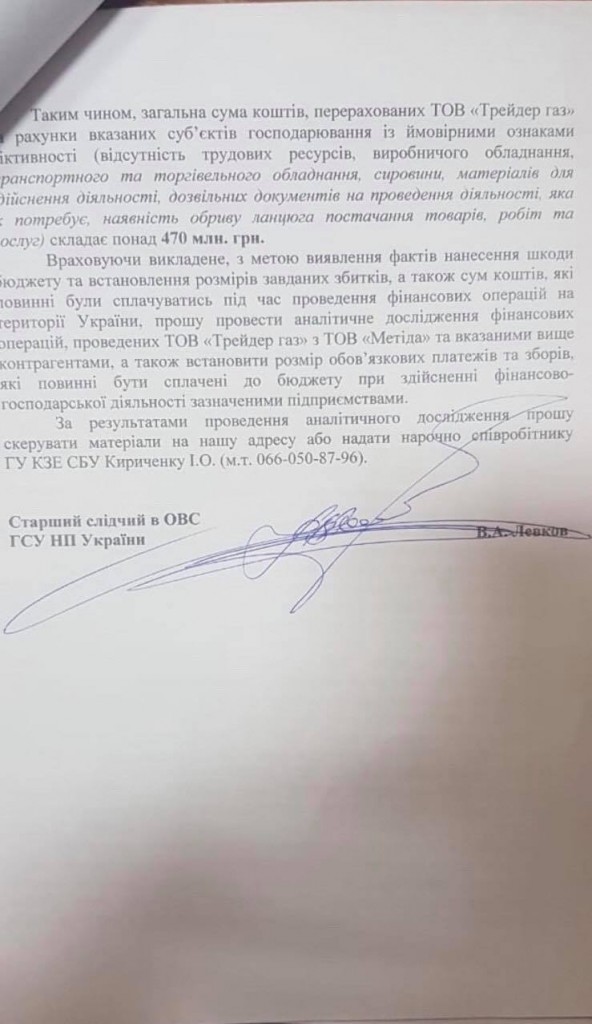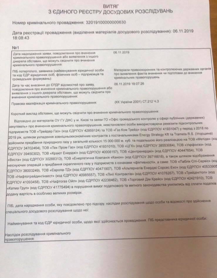 Сотрудники Главного следственного управления полиции Украины совместно с Государственной фискальной службой начали расследование по подозрению в контрабанде газа, уклонении от уплаты НДС, фиктивном налоговом кредите и непоставках газа потребителям по предоплате.
