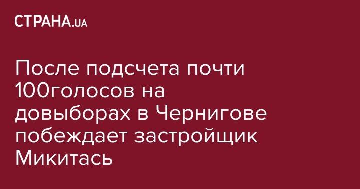 После подсчета почти 100% голосов на довыборах в Чернигове побеждает застройщик Микитась