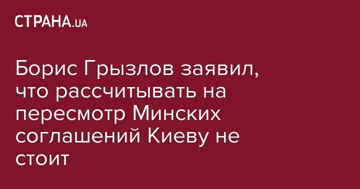 Полномочный представитель России в минской Трехсторонней контактной группе Борис Грызлов сообщил, что Киеву не стоит рассчитывать на пересмотр Минских соглашений и пытаться покинуть их в одностороннем порядке.