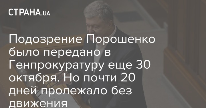Подозрение Порошенко было передано в Генпрокуратуру еще 30 октября. Но почти 20 дней пролежало без движения