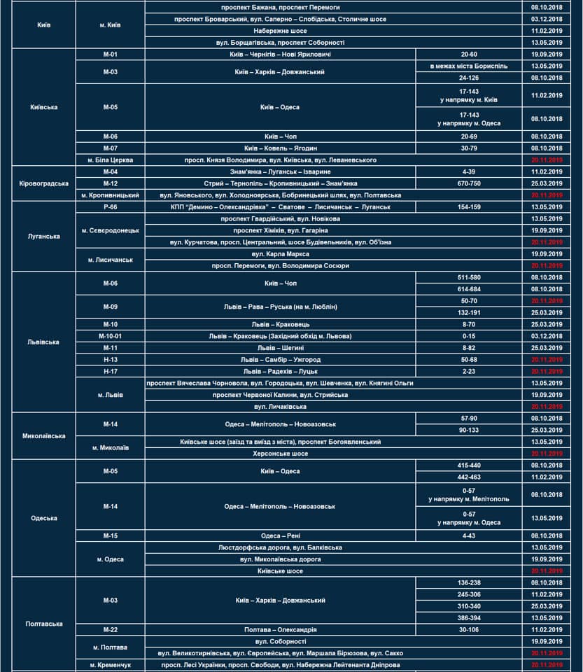 Перечень пунктов их размещения в Украине опубликован на fb-странице первого заместителя главы Департамента патрульной полиции Украины Алексея Билошицкого.