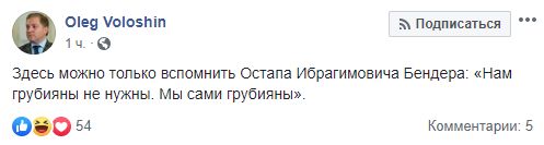 Нардеп Олег Волошин указал на грубость Зеленского: "Здесь можно только вспомнить Остапа Ибрагимовича Бендера: "Нам грубияны не нужны. Мы сами грубияны".