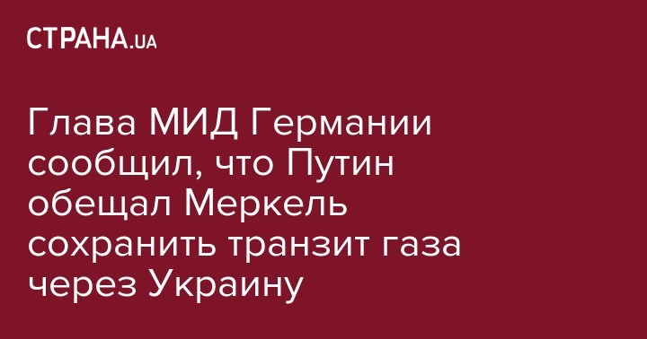 "Для нас это очень важная тема (о сохранении транзита газа из России через Украину - Ред.). Госпожа федеральный канцлер Ангела Меркель много месяцев назад сказала четко президенту России Владимиру Путину, что реализация альтернативного газового транзита через Украину и в будущем будет очень важной темой. И Путин дал ей некоторые обещания", - цитирует Мааса ТАСС