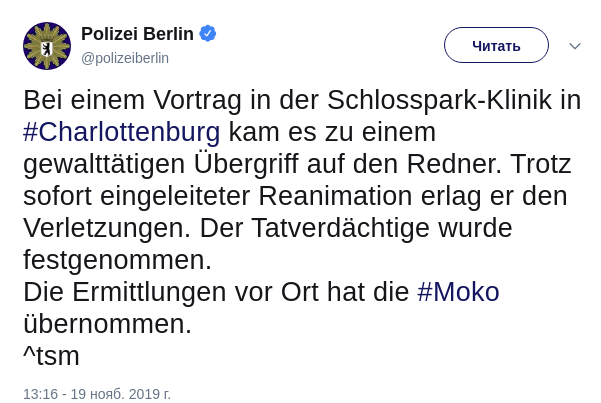 Скриншот: Twitter/Polizei Berlin