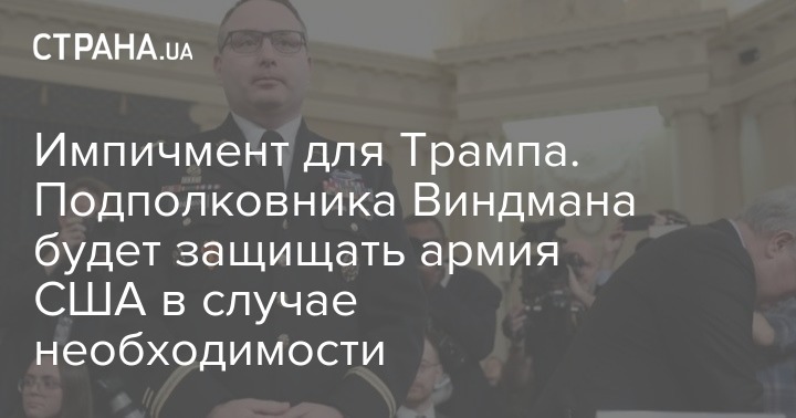Импичмент для Трампа. Подполковника Виндмана будет защищать армия США в случае необходимости
