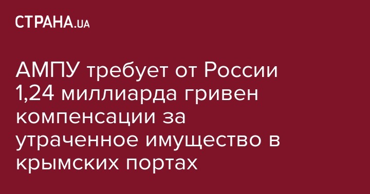 Администрация морских портов Украины (АМПУ) готовит требование к правительству Российской Федерации о выплате компенсации за убытки понесенные вследствие "временной оккупации территории автономной республики Крым", говорится в сообщении на сайте ведомства.