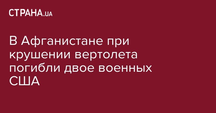 В следствие аварии вертолета в Афганистане погибли двое военнослужащих Соединенных Штатов Америки. По предварительным результатам расследования авария случилась не из-за обстрела противника. Об этом сообщает"Радио Свобода".