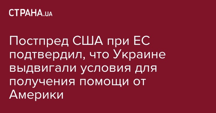 Постпред США при ЕС подтвердил, что Украине выдвигали условия для получения помощи от Америки
