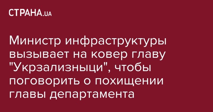 Министр инфраструктуры вызывает на ковер главу "Укрзализныци", чтобы поговорить о похищении главы департамента
