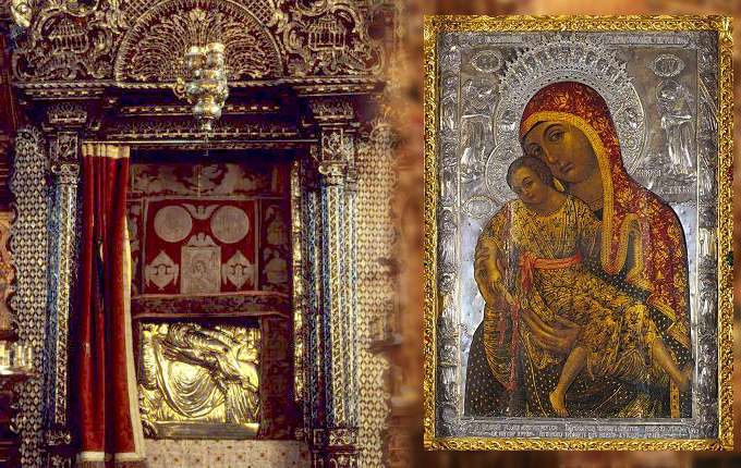 Так выглядит икона Богоматери Киккской в монастыре на Кипре. Фото: cyprus-guru.com
