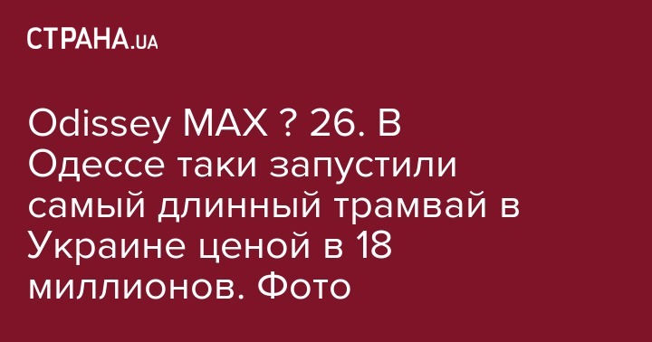 Вчера, 20 ноября, в Одессе после длительных испытаний начал регулярные рейсы трехсекционный трамвай Odissey MAX, самый длинный в Украине. Трамвай будет курсировать по маршруту №26 - от Старосенной площади до 11-й станции Люстдорфской дороги. Об этом сообщает Odessa.online.