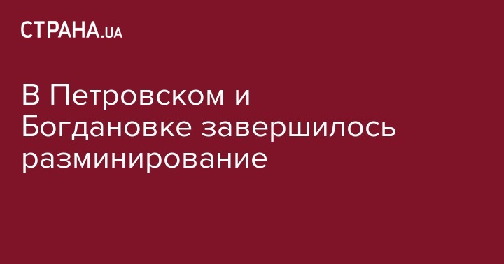 Пресс-офицер 128-й Отдельной горно-штурмовой бригады старший лейтенант Богдан Петрик заявил, что разминирование территории в районе населенных пунктов Богдановка и Петровское Луганской области завершилось. Об этом сообщает "Радио Свобода".