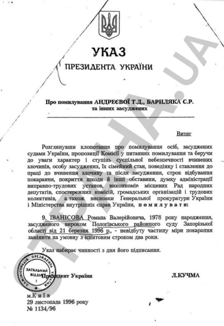 А в конце ноября 1996 года вышел указ Леонида Кучмы о помиловании Иванисова. Неотбытую часть наказания ему заменили на условный срок.