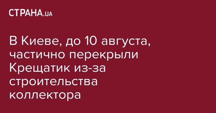 В центре Киева часть Крещатика будет перекрыта до 10 августа из-за строительства второй нитки главного городского канализационного коллектора. Об этом сообщает пресс-служба Киевской городской государственной администрации.