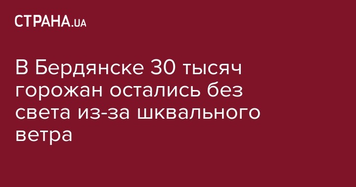 Около 30 тысяч жителей города-курорта на Азовском море Бердянска остались без электроснабжения из-за шквального ветра с 21 на 22 ноября. Об этом говорится в сообщении Районных энергосетей Бердянска, пишет пресс-служба горсовета Бердянска.