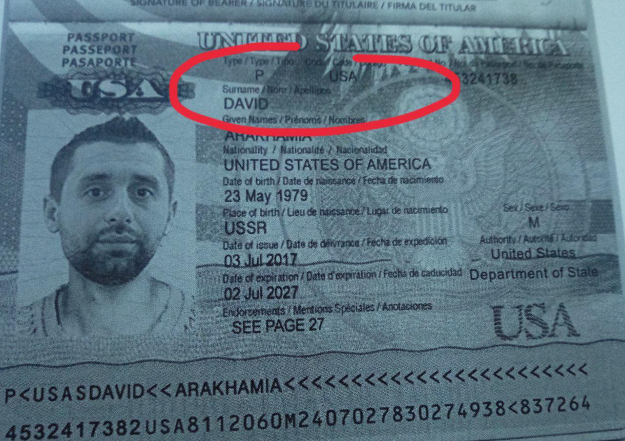 Фото-скан якобы американского паспорта Арахамии после этого появилось на Telegram-канале "Темный рыцарь", который связывают с депутатами от "Слуги народа", близкими к Игорю Коломойскому.