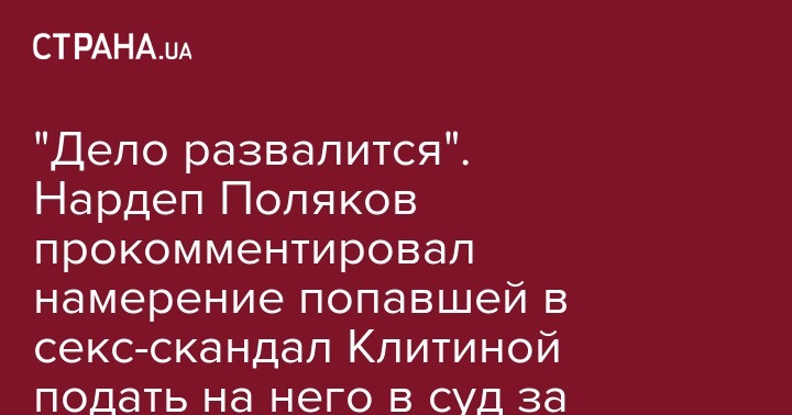 Народный депутат Антон Поляков прокомментировал "Стране" желание замминистра по вопросам евроинтеграции в Министерстве инфраструктуры Украины Александры Клитиной подать на него в суд иск о защите чести и достоинства.