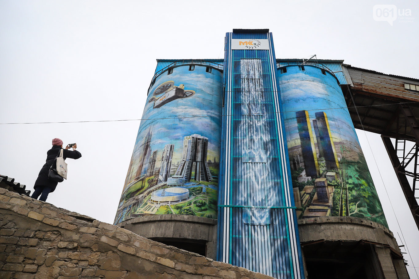 В Запорожье на территории Мокрянского каменного карьера создали крупнейший мурал Украины под названием "Город будущего", над которым три художника трудились около месяц, потратив 20 кг краски. Картина разместилась на бетонных бочках высотой 32 метра и диаметром 11,5 метров, сообщает 061.ua.