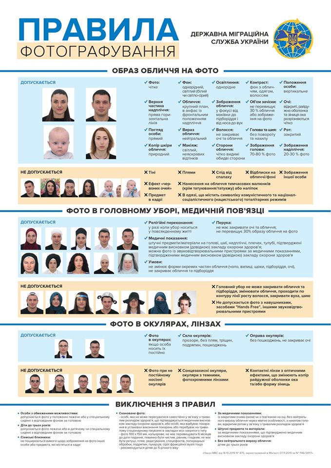 В Государственной миграционной службе Украины обнародовали новые правила фотографирования. В частности. в них говорится, что новые правила фотографирования касаются биометрических документов как украинцев (ID-карта и загранпаспорт), так и иностранцев и лиц без гражданства (вида на временное или постоянное проживание).