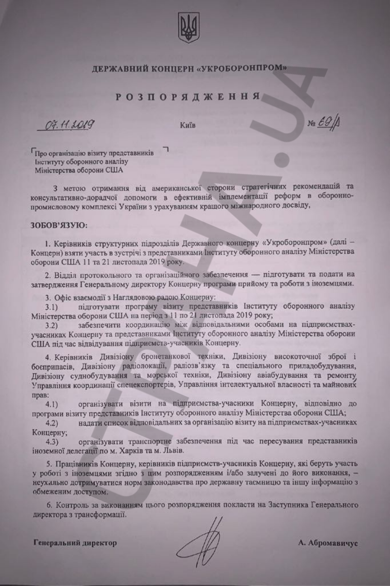 Распоряжение о полном содействии "десанту" подписал лично Абромавичус.