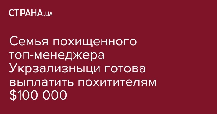 Друзья и семья похищенного главы департамента электроснабжения "Укрзализныци" Валерия Людмирского готовы выплатить $100 тысяч за его освобождение. Свое обращение  родственники похищенного, обнародовали на сайте Центра исследований энергетики EIR Center.