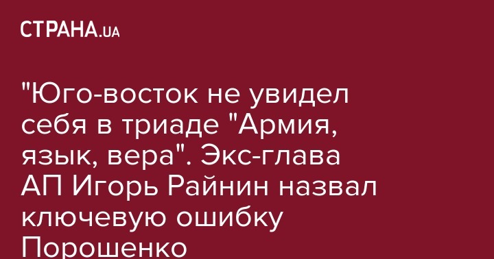 "Юго-восток не увидел себя в триаде "Армия, язык, вера". Экс-глава АП Игорь Райнин назвал ключевую ошибку Порошенко