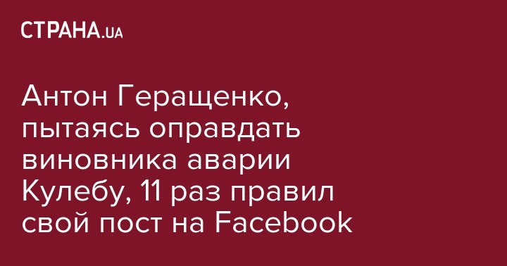 Антон Геращенко, пытаясь оправдать виновника аварии Кулебу, 11 раз правил свой пост на Facebook