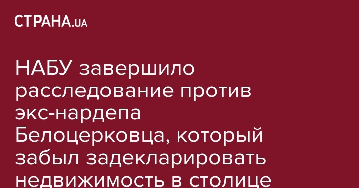 Детективы НАБУ и прокуроры САП завершили расследование в отношении народного депутата Украины ВР VIIІ созыва Дмитрия Белоцерковца, которого подозревают в недекларировании недвижимости в столице. Об этом сообщается на сайте НАБУ.
