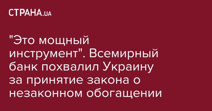 "Сегодня президент Украины подписал закон, который возвращает уголовную ответственность за незаконное обогащение и вводит механизм гражданской конфискации активов чиновников, которые не могут быть подтверждены их законными доходами. Всемирный банк приветствует закон, который заполняет критические пробелы в основных принципах противодействия коррупции в Украине, предоставив НАБУ и САП мощный правовой инструмент в борьбе с коррупцией среди чиновников. Гражданская конфискация поможет сдерживать коррупцию путем ограничения материальных выгод, которые чиновники пытаются получить, воруя у граждан Украины", - сказано в заявлении пресс-службы ВБ.
